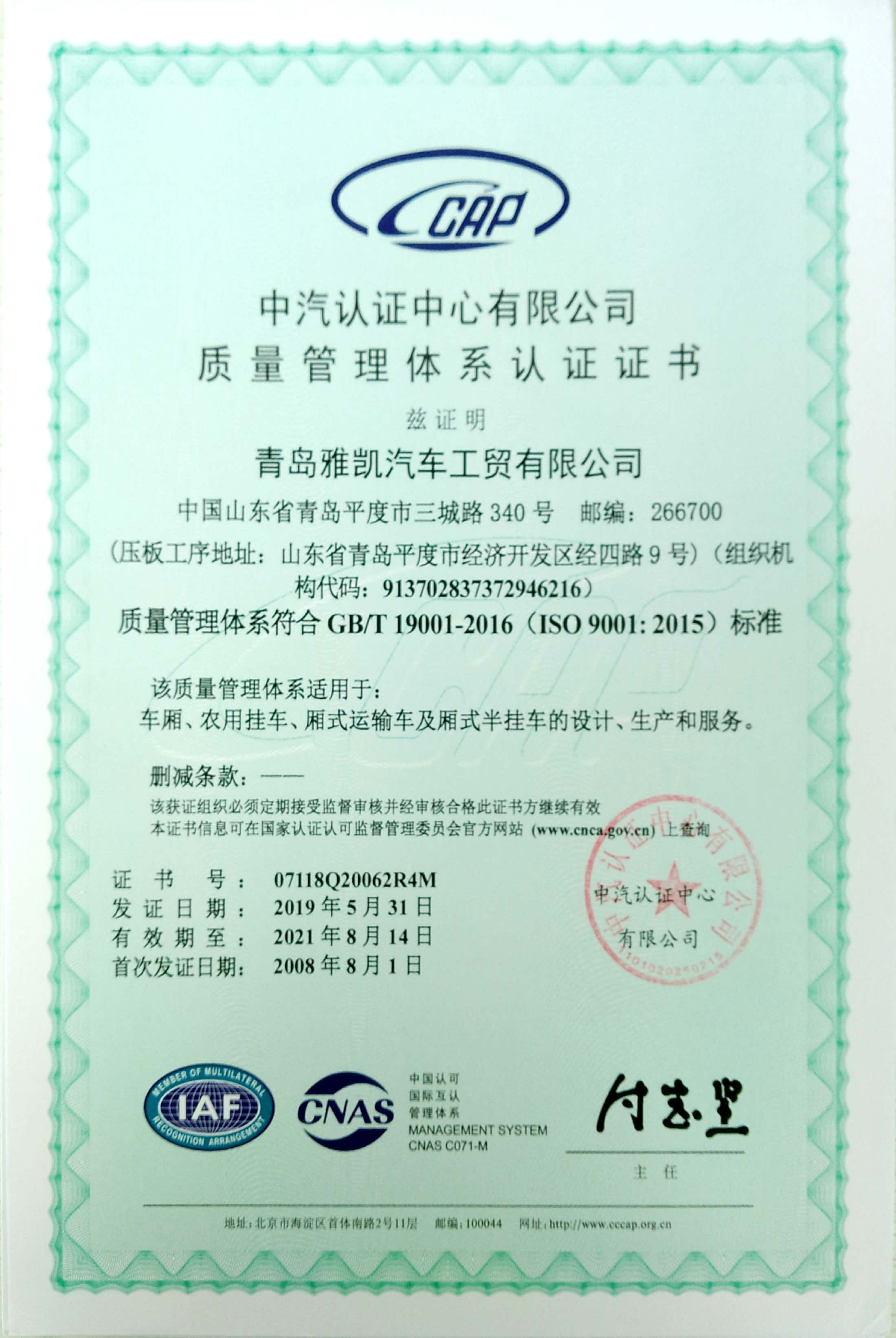 青島雅凱汽車工貿有限公司(以下簡稱青島雅凱),是國家工業和信息化部批準生產的高新技術企業,為此公司特創立“冰凌方”品牌,并在市場上占有了相當的份額。青島雅凱是中國北方地區生產各類專用車的骨干企業,是冷藏車、保溫車、半掛冷藏車、雞苗車、散裝飼料車等專用車科研開發和生產基地,年產量5000余臺。公司已通過ISO9001:2008國際質量體系認證和國家強制性產品認證(“CCC認證”).