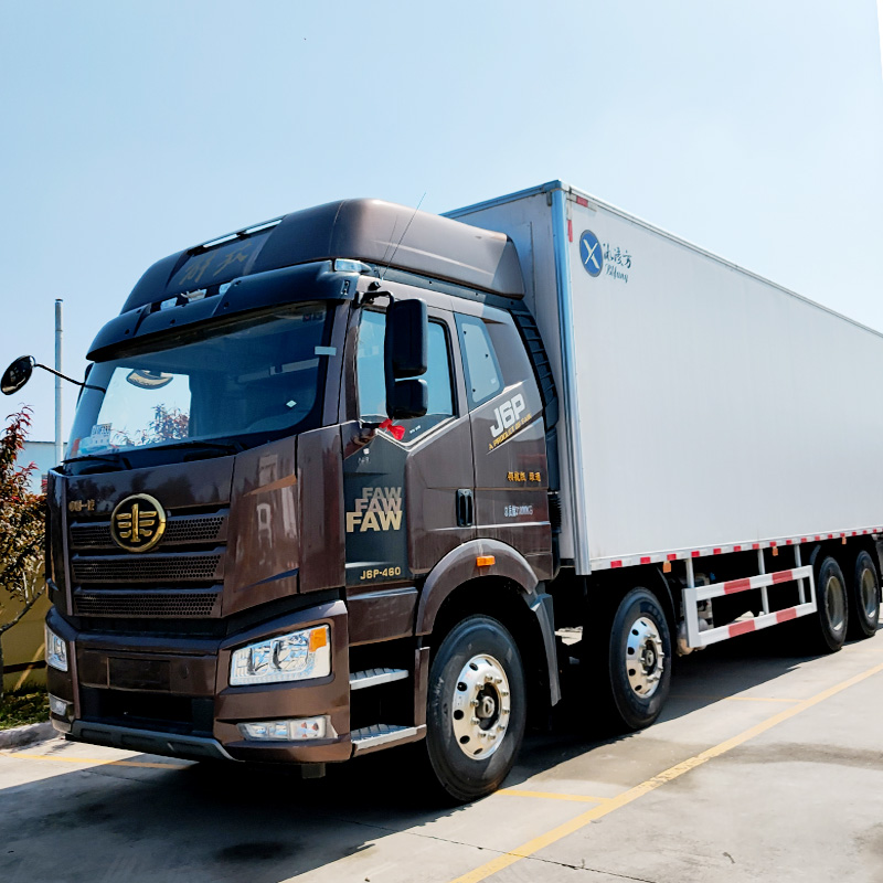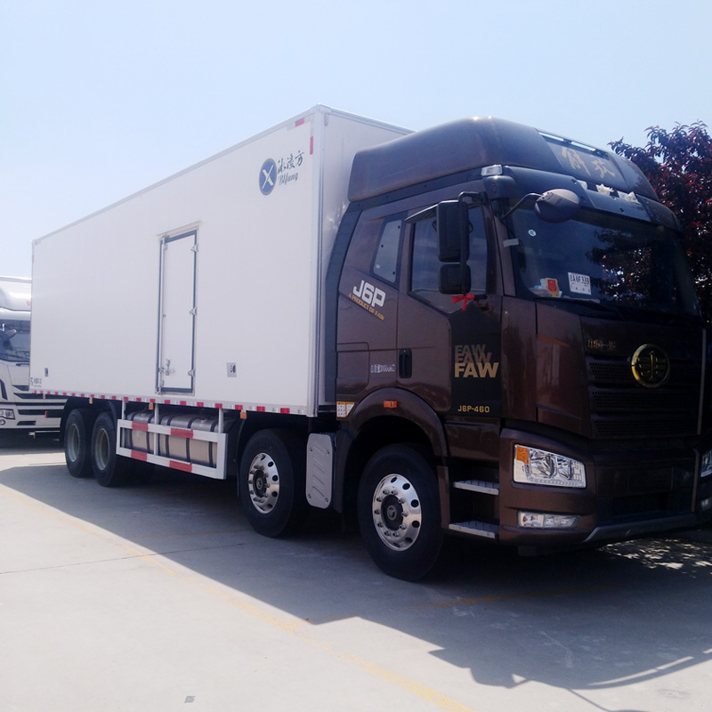冰凌方冷藏車廂體采用全封閉聚氨酯板塊粘接玻璃鋼結(jié)構(gòu),廂體比同類產(chǎn)品輕,能有效的降低運(yùn)輸成本。