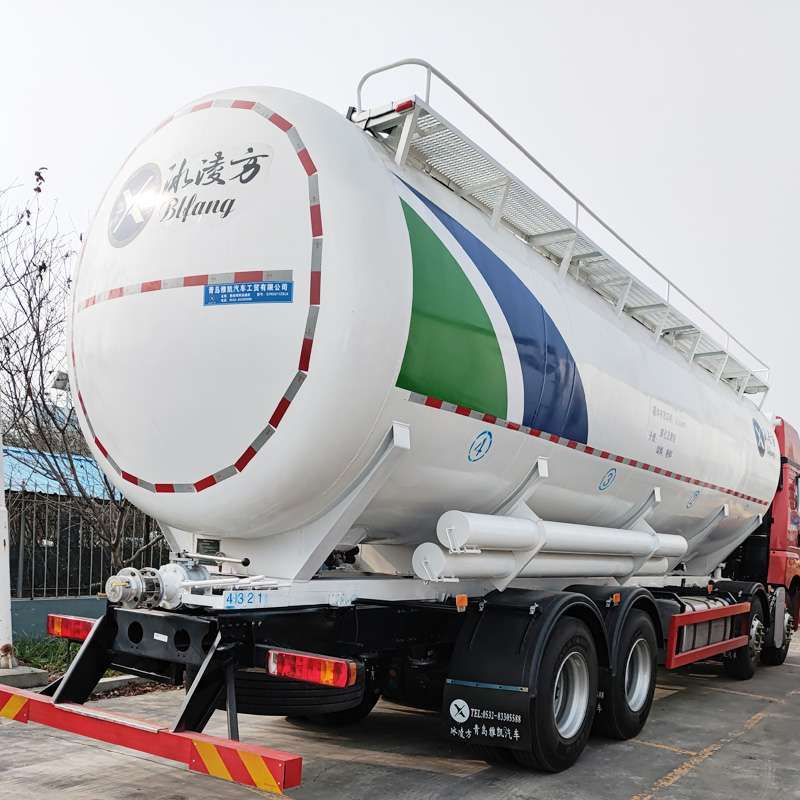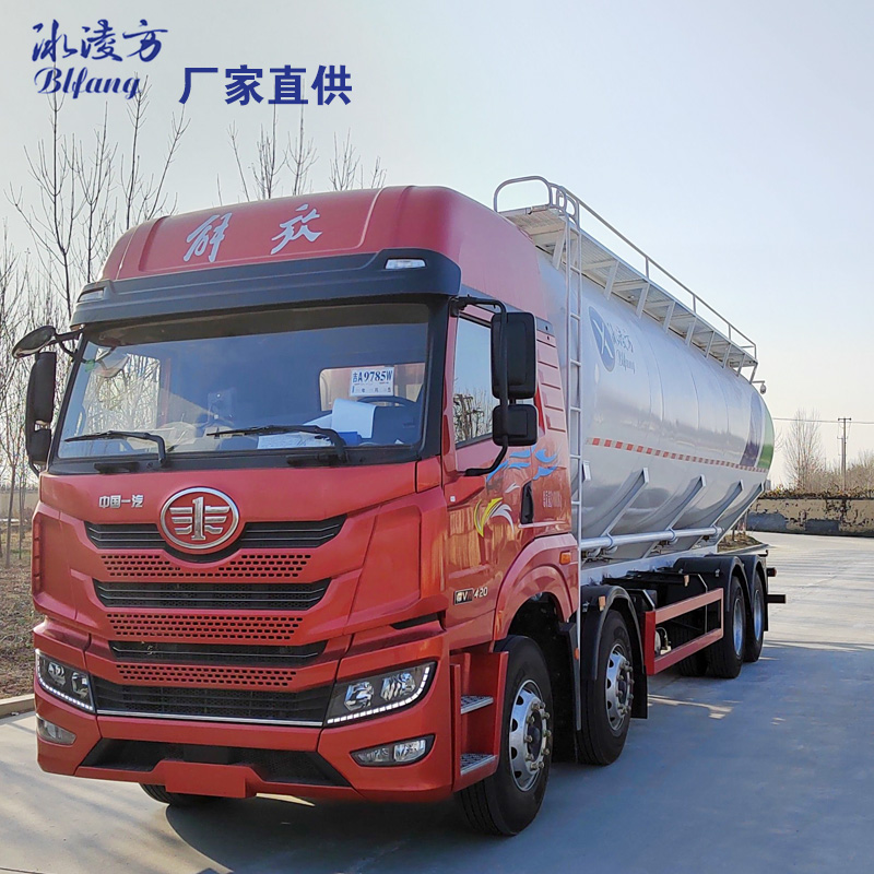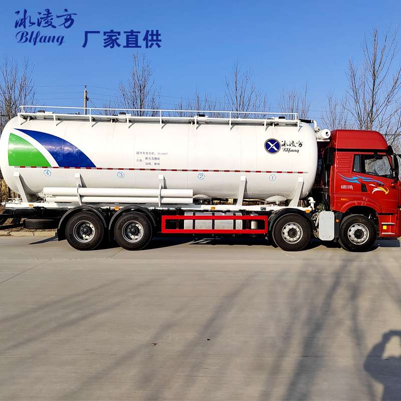 前四后八散裝飼料罐運輸車 冰凌方散裝飼料運輸車解放悍V氣推式15噸32立方